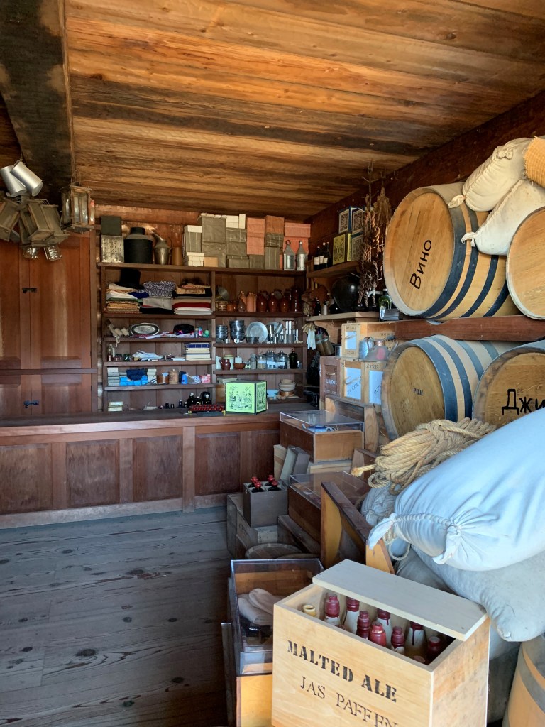 We continued towards the Kuskov house, where Ivan Aleksandrovich Kuskov, the founder of Fort Ross, had lived. We peeked into his study and saw a magnifying glass, a telescope, ink and quill, a blotting sheet. We walked upstairs to see where the cooks, clerks, and artisans had slept during our field trip. There were bedrooms that were sealed off by ropes and bars that had beds inside of them with old and musty duvets.